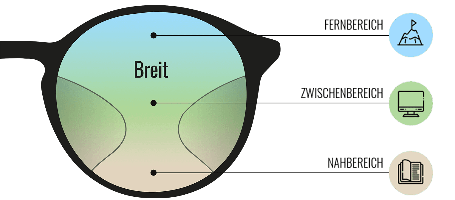 Heutige Gleitsichtbrillen bieten fast immer am Übergang vom Fern- zum Nahbereich einen kleineren Zwischenbereich, der das Sehen auf mittlere Distanzen erleichtert und dem Träger somit einen gleitenden Übergang zwischen den Sehbereichen ermöglicht. Mit einer Gleitsichtbrille sind Sie für den Alltag bestens gerüstet. Für spezielle Situationen im Arbeits- und Büroleben gibt es zusätzliche Brillen mit besonderen Gleitsichtgläsern, wie zum Beispiel eine einfache Bildschirmarbeitsplatzbrille oder Raum- bzw. Nahkomfortbrille. In unserem untenstehenden FAQ-Bereich können Sie sich noch detaillierter zum Thema Gleitsichtbrille informieren. Gerne stehen wir Ihnen auch persönlich bei Fragen zur Verfügung.